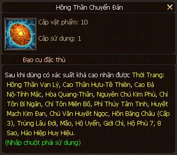 Trong thời gian diễn ra sự kiện, sử dụng Chuyển Đản sẽ có cơ hội nhận được nhiều vật phẩm quý như: Thời Trang: Hồng Thần Vạn Lý, Trân Thú Nguyên Đan,…
